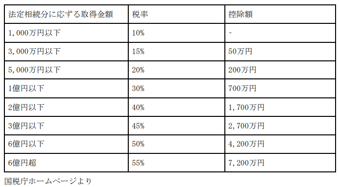 また、配偶者や法定相続人の軽減税率を考えて、相続税の税率を調べてみると良いでしょう。