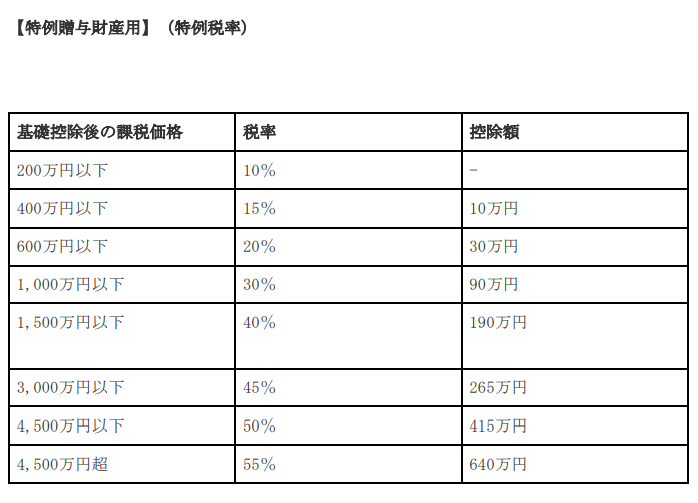 贈与税の税率が、2015年から「一般贈与財産用」と「特例贈与財産用」に分かれました。
